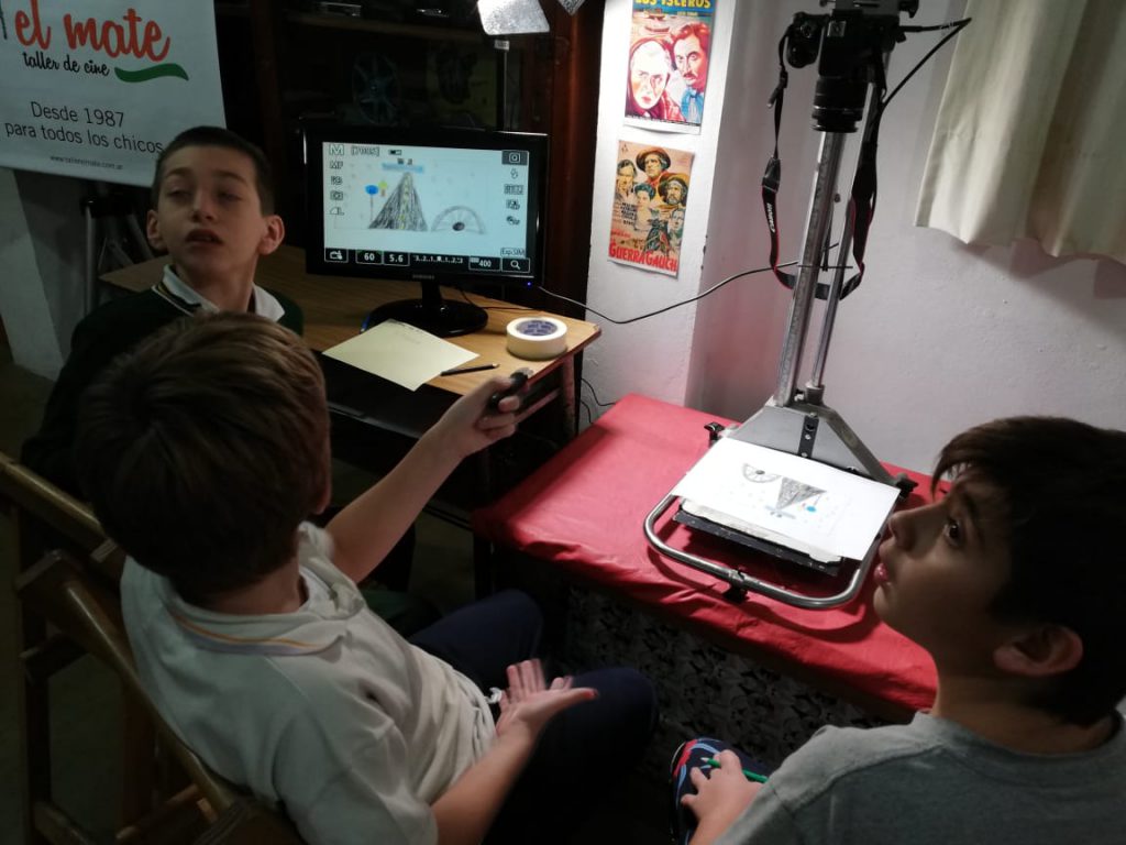 En el taller inicial de los martes los chicos de «El Mate» estuvieron trabajando en grupo, animando con recortes.